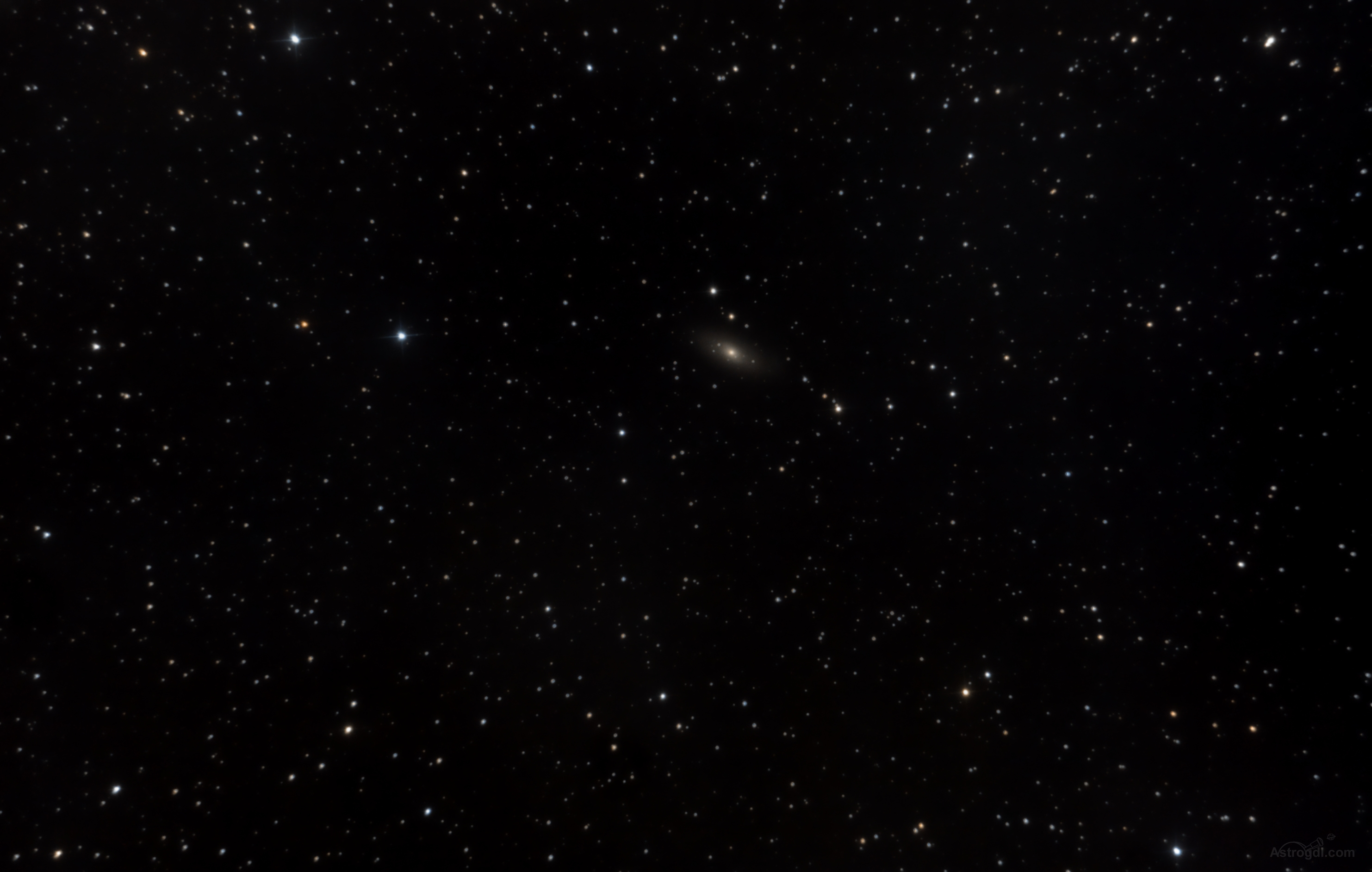 NGC 1023 is a barred lenticular galaxy, a member of the NGC 1023 group of galaxies in the Local Supercluster. Distance measurements vary from 9.3 to 19.7 million parsecs (30 to 64 million light-years).